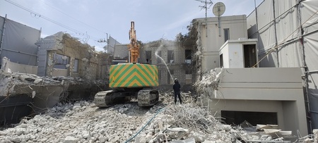 閑静な住宅街の為、作業開始時間を9時以降に変更し機械は、ブレーカー作業とせず圧砕機を使用して苦情なく工事完了をしています。